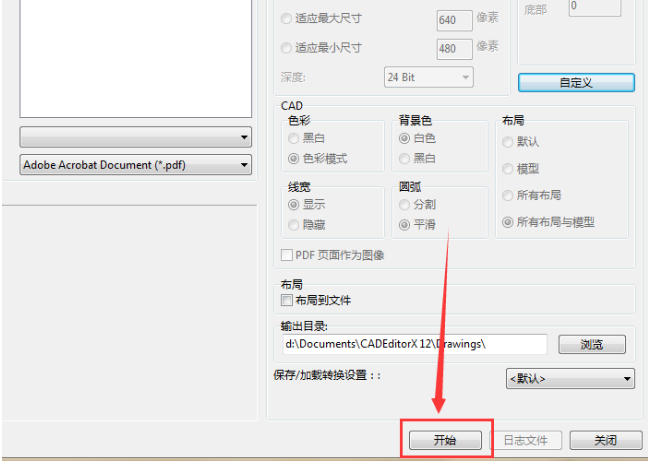 5、最后点击“开始”按钮,软件就会将添加的CAD批量转换成PDF文件。