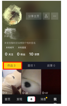 2、在我的界面点击“作品”,选择自己要查看评论的作品;