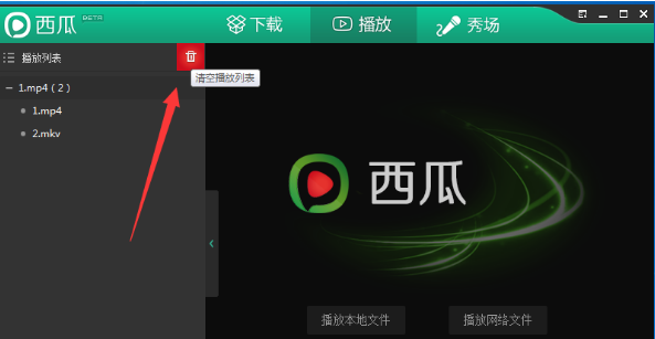 4、如果你想要清除全部播放记录的话,那么只需点击下图位置的垃圾桶按钮即可清空播放列表: