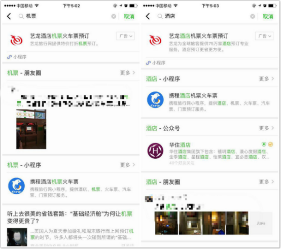 此外, 微信搜一搜也支持买景点票、汽车票、船票、机票,分别由携程旅游小程序和同程旅游小程序提供。