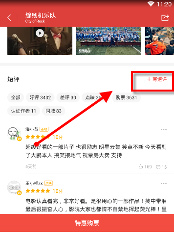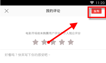 2、在界面往下拉点击【写短评】,进入界面选择给予几颗星,用户如果觉得电影好看便可以给多几个星星,然后在方框输入文字,点击【发布】。(如下图)
