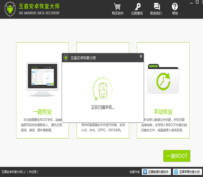 互盾安卓恢复大师给用户提供了三种数据恢复模式,其中有一项“免Root恢复”,很多小伙伴还不是很清楚应该如何使用。下面小编就给大家演示手机不用ROOT就可以恢复丢失数据的操作,一起来看看吧。