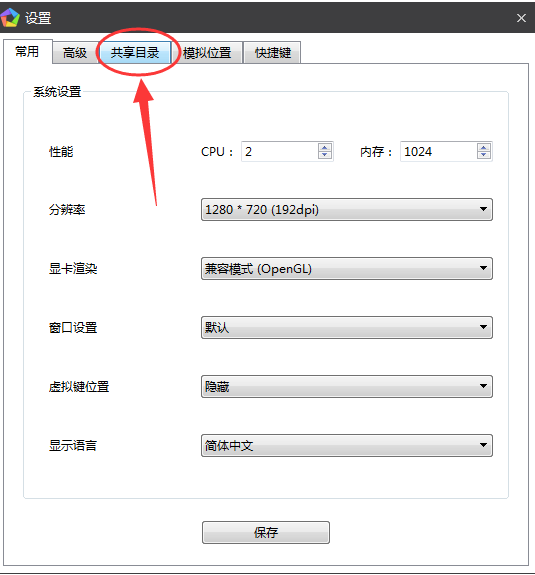 2、接着在弹出来的“设置”窗口中打开“共享目录”;
