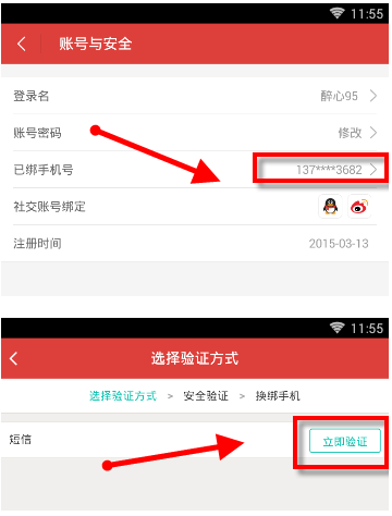 2、接着点击【账号与安全】,最后即可根据自己的需要选择一种验证方式按照系统提示进行验证即可更改绑定手机号码了。(如下图)