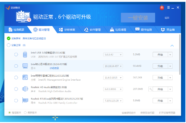 3、来到“驱动管理”界面后它会帮我们自动扫描电脑中安装的驱动;