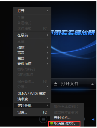 1、首先打开迅雷看看播放器,并在播放器主界面点击鼠标右键,然后找到“定时关机”的功能,如下图: