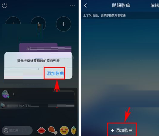 3、随后点击提示中的【添加歌曲】,然后再点击屏幕下方的【添加歌曲】;