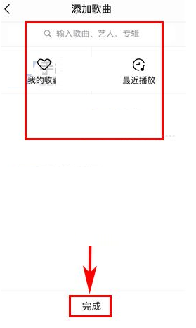 4、最后从相关途径中添加相应的歌曲后,点击【完成】即可在上了DJ后,顺序播放列表中的歌曲。(如下图)