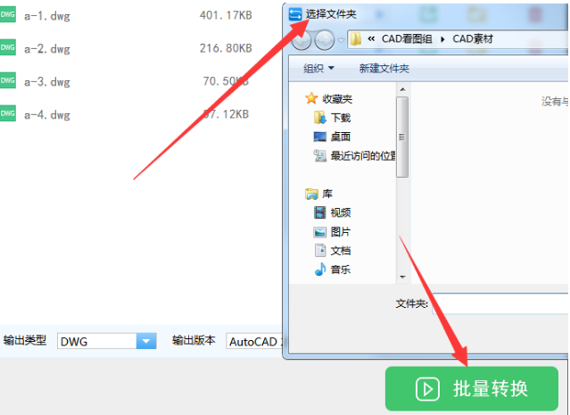 4、接着,在软件右上角点击“浏览”按钮,在弹出的对话框中设置转换后CAD文件的储存位置,最后点击“批量转换”功能键进入文件转换状态,等文件转换完成即可。