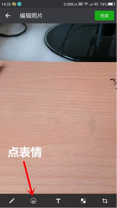 1、打开微信聊天对话框,拍照后并编辑图片。