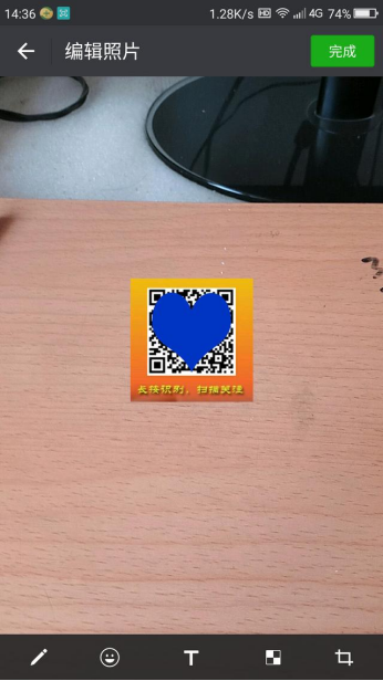 3、点击二维码就可以加到照片中,做好了就可以发送了。