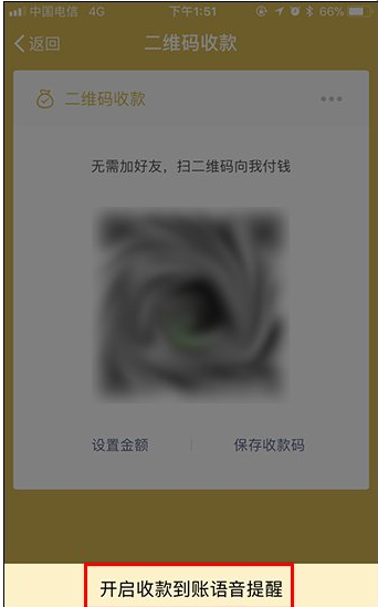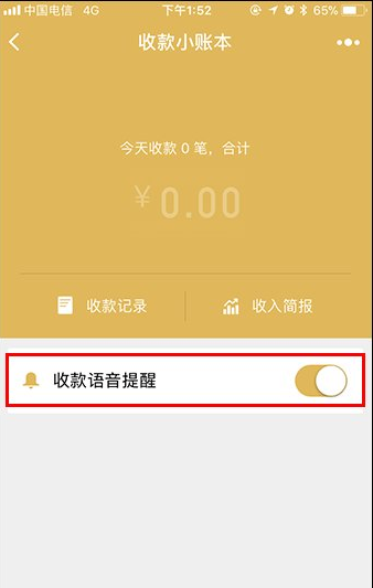 4、进入界面后勾选“收款语音提醒”即可开启到账语音提示。