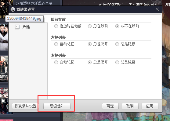 2、在弹出来的选项卡中点击“播放器设置”选项,