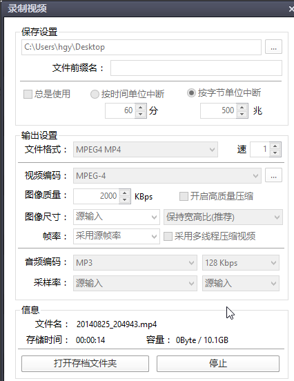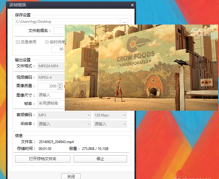 6、在截取视频结束时暂停视频播放,并且点击“停止”按钮,这一段视频就截取存放在文件夹中。