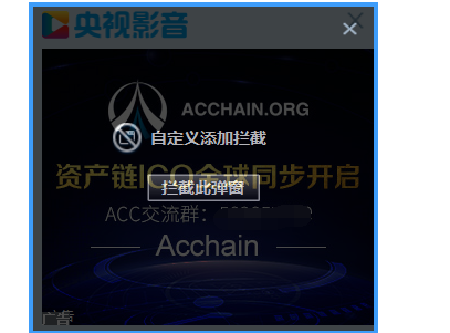3、接着我们的鼠标会变成一个“瞄准镜”,我们将鼠标放在右下角的央视影音弹窗上点击鼠标左键,接着在点击“拦截此弹窗”即可,如下图所示: