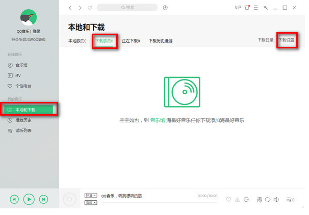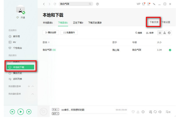 2、接下来,打开左侧的下载的歌曲,看下载的地方是否是你想要下载的地方。