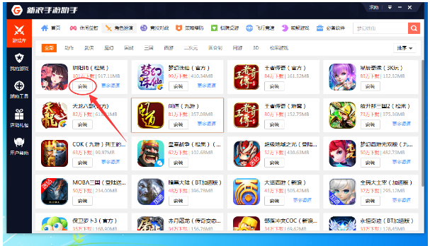 1、在本站下载新浪手游助手并安装,打开新浪手游助手,在新浪手游助手的“游戏库”界面可以进行搜索下载游戏,如下图所示: