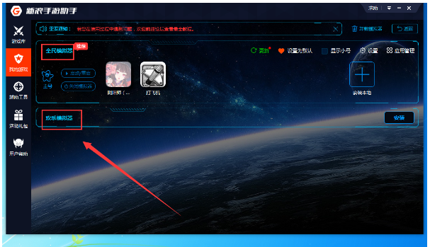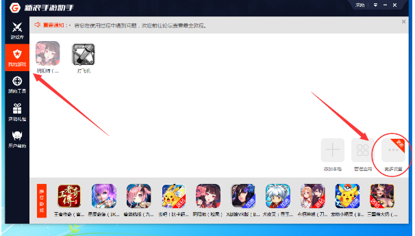 3、另外,新浪手游助手有两个模拟器,在“我的游戏”界面打开“更多设置”即可看到;