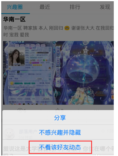 3、除了请关注的部落会提醒你,QQ好友发部落动态也会有提醒。这个时候要做的就是把那些常发部落消息的QQ好友屏蔽掉。