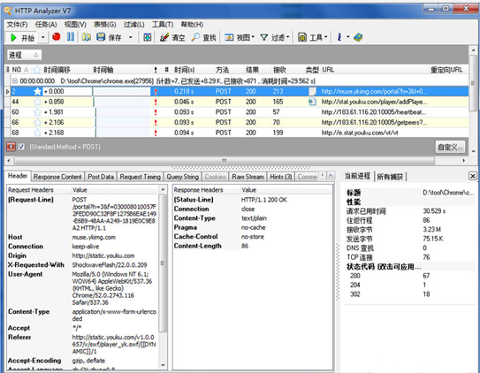HTTP Analyzer能够轻松实时的捕捉HTTP/HTTPS协议数据,详细显示文件头、内容、Cookie、查询字符窜、提交的数据、重定向的URL地址等信息,可以提供缓冲区信息、清理对话内容、HTTP状态信息和其他过滤选项。同时,它还是一个非常有用的进行分析、调试和诊断的开发工具。