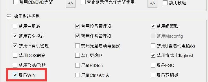 在“操作系统控制”栏目中,勾选“屏蔽Win键”项,即可实现屏蔽Windows键操作。待游戏结束后,清除此项即可。