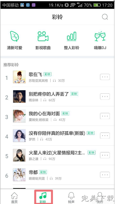 5、进入酷狗铃声客户端之后滑到彩铃界面,如下图。