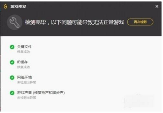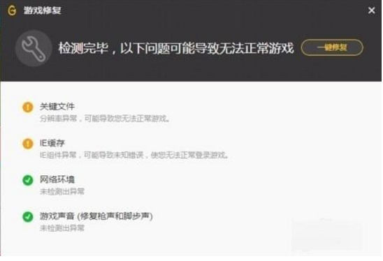 3、检测过后然后再点击“一键修复”,即可修复你所需要修复的游戏目标。