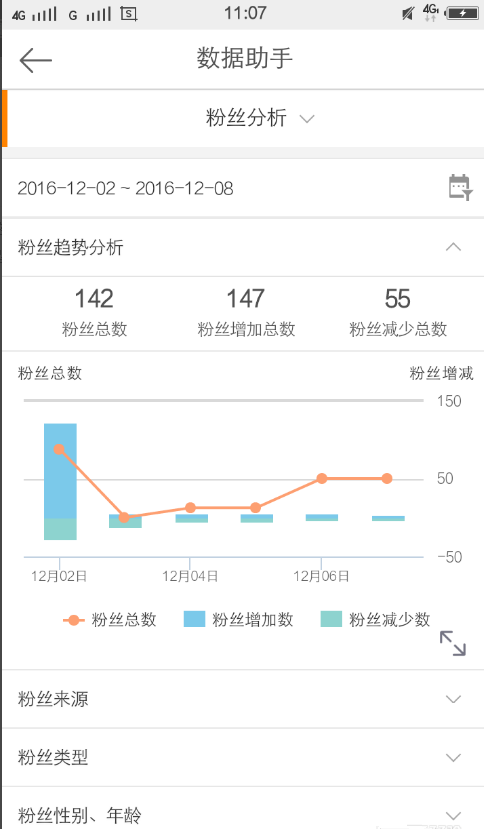 5、今天说说粉丝分析,这里可以查到粉丝数量、粉丝来源、粉丝类型、粉丝增加减少数等等。