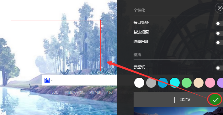 6、回到QQ浏览器主页背景,可以看到已经变成所选图片的背景,同时自定义显示对勾的样式。