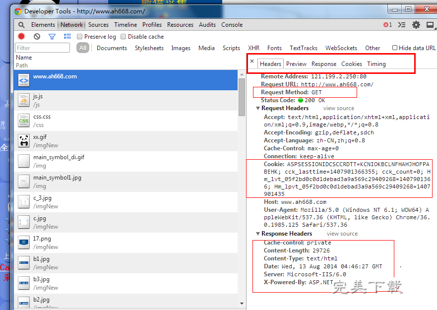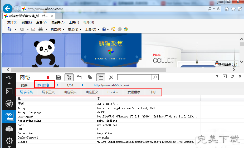 任意点击一条http请求,在工具右边会列出该请求的详细信息,包括请求头、请求方式、提交的内容、cookie等内容。