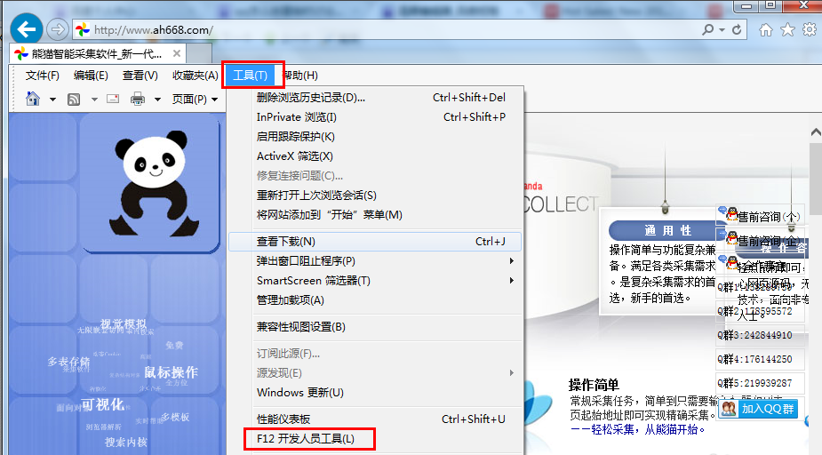 IE浏览器打开抓包工具的方式也差不多,工具-->F12开发人员工具,但是IE有个特点在没有打开任何页面的时候,该选项是灰色不让打开的状态。