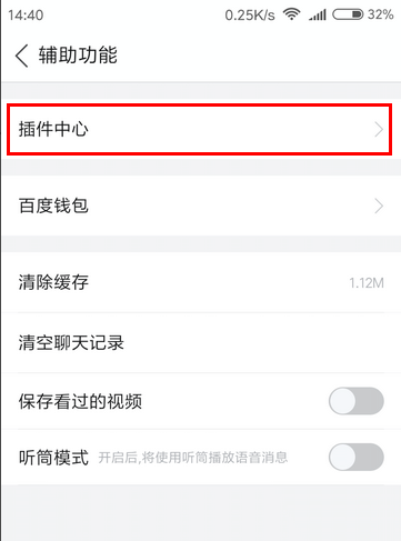 6、在辅助功能页面,点击进入“插件中心”。