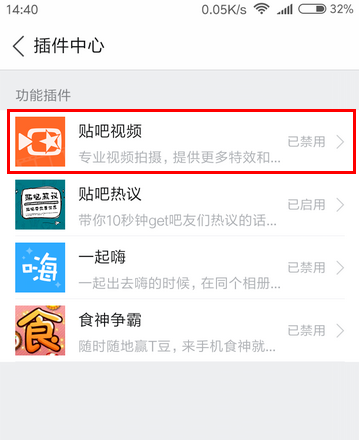 7、最后,在插件中心将“贴吧视频”禁用就可以了。
