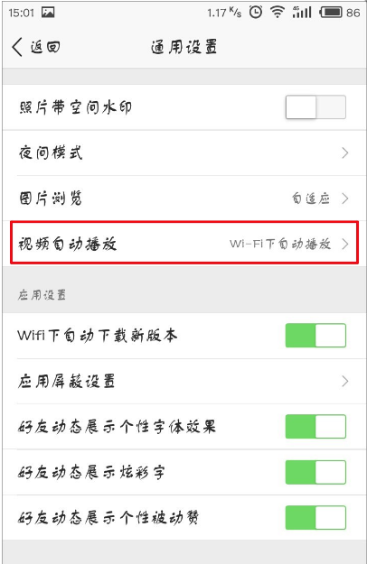 2、然后进入“通用设置”,点击“视频自动播放”一栏,