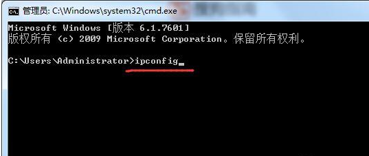 3、这时就进入了DOS界面啦,我们直接输入ipconfig。