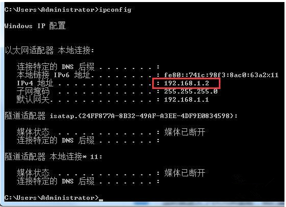 通过命令来查看IP地址