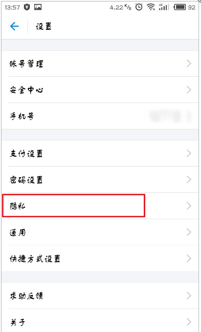 2、在打开的设置页面中,找到“隐私”按钮并点击,