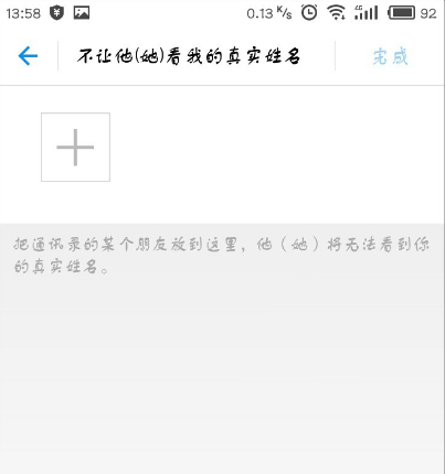 4、然后再点击下面的“不让他(她)看我的真实姓名”,设置只让部分好友看到自己的真实姓名。