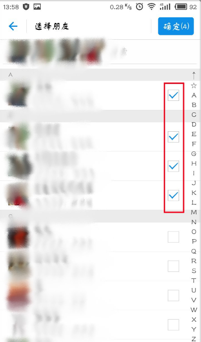 6、在打开的好友列表中,选择要隐藏姓名的好友名称,再点击“确定”按钮,