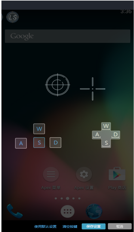 2、点击“键盘设置”按钮后就会来到51安卓模拟器按键设置界面,在该界面我们只需点击鼠标左键即可创建按键,点击右键就会删除按键;