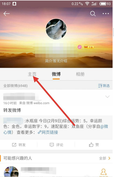4、进入好友主界面后,我们点击“主页”按钮,如图所示,