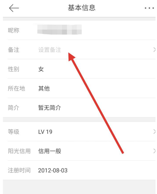 6、进入好友基本信息后,我们就点击昵称下面的备注,就可以进行添加或修改了,如图所示,