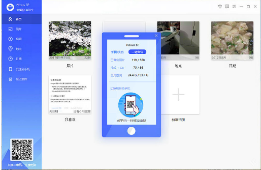 2、然后在手机端安装相册飞船客户端,用相册飞船手机客户端扫描服务器端的二维码即可建立连接(须在同一局域网下),该连接在下次连接时自动连接,无需再次扫描二维码,支持多台手机同时连接。