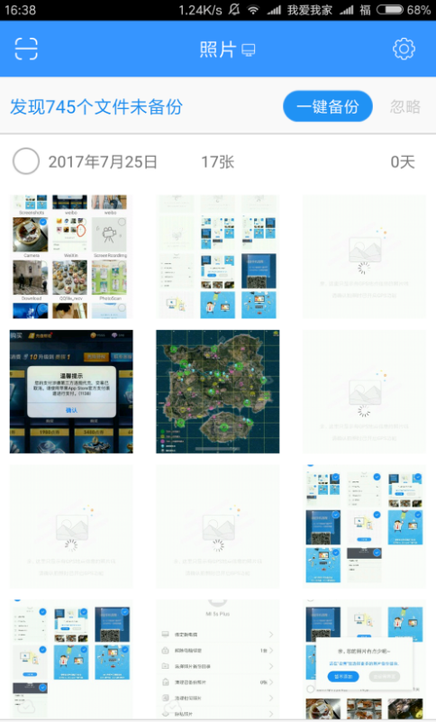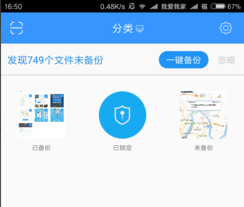 5、由于是在局域网环境下,相册飞船的备份速度比传网盘快多了。在相册飞船的分类页面按分类来查看照片,以备份未备份及锁定相片分类查看。