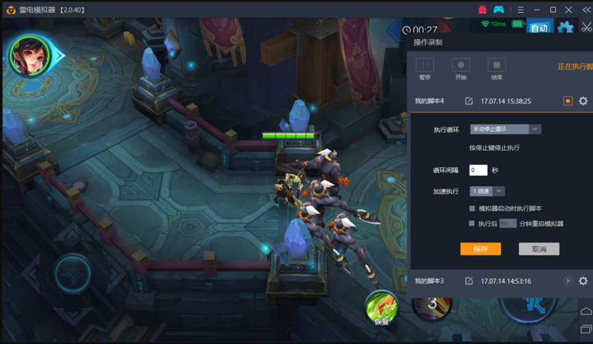 有了操作录制功能之后,甚至不需要辅助脚本,就可以达到持续挂机效果!实际操作界面如下图: