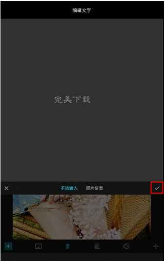 5、在“编辑文字”界面中,输入想要添加的文字内容,然后点击界面右侧的“√”;