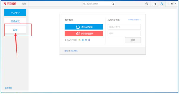 1、首先我们运行乐视视频软件,然后在乐视视频主界面的右上角打开“用户中心”,如下图所示: