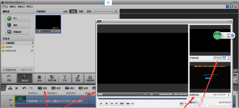 1、打开AVS video editor软件,点击媒体库,导入自己的视频,