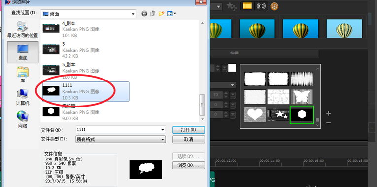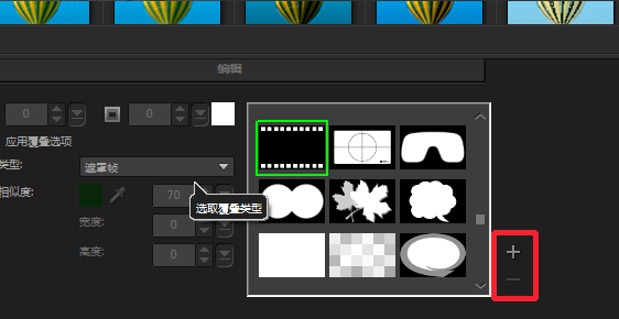 9、绘制好之后进行保存,然后打开会声会影,在遮罩帧中选择添加遮罩,我们就可以看到我们绘制的遮罩。