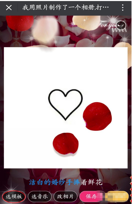 8、相册刚开始打开出现的音乐和模板都是它默认的音乐模板,如果你不喜欢可以点击左下角“选模板”、“选音乐”,会出现多种模板和音乐让你选择,选择点击你喜欢的。